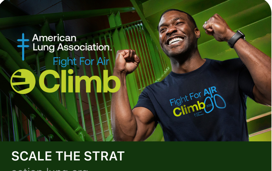 Scale the Strat challenges participants to climb the iconic STRAT tower while raising critical funds to support lung health research, education, and advocacy for individuals and families living with lung disease.